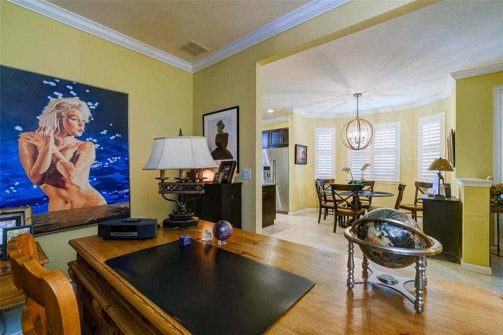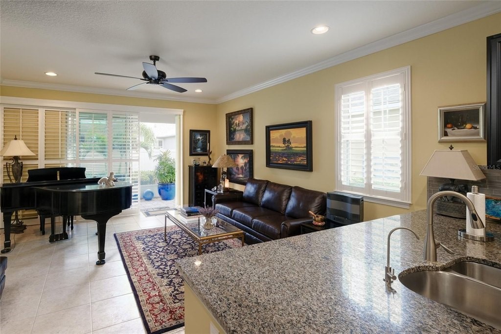 Welcome to this highly sought-after Captiva Model, ideally positioned directly across from the community pool and dog park in one of Sarasotas most centrally located and gated maintenance-free communities. This single-level home offers a well-designed open floorplan that blends the kitchen, dining, and living areas seamlessly with an extended screened lanaiperfect for entertaining or relaxing in Floridas beautiful weather. The enhanced kitchen features solid wood cabinetry with 42 uppers, granite countertops, a glass tile backsplash, stainless steel appliances, a solid-surface cooktop, and a built-in wall oven and microwaveideal for any home chef. The spacious primary suite features a tray ceiling and 8-foot sliding glass doors leading to the lanai. The oversized primary bath boasts a double vanity with undermount sinks, a linen station for ample storage, and a large custom walk-in closet. The secondary bedroom also features built-in custom shelving, while the den or home office offers flexibility for remote work or hobbies. Additional upgrades and features include: New roof (2023) New HVAC system (2024) New water heater (2025) 17 ceramic tile throughout 8-foot interior doors, crown molding, and custom plantation shuttersincluding on sliding glass doors Whole-home water softener system with reverse osmosis for purified kitchen water and ice The Enclave at Forest Lakes offers two gated entrances and resort-style amenities, including a geothermal heated pool, covered outdoor lounge with BBQ, and a fenced dog parkall designed to enrich your lifestyle. Situated in a prime Sarasota location, this home places you minutes from The Legacy Trail, downtown Sarasota, top-rated dining, shopping, and world-renowned beaches. Cultural institutions, entertainment, and leading healthcare are all a short distance away.